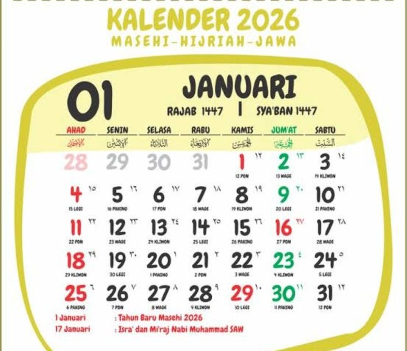 - Kamis, 1 Januari 2026: Tahun Baru Masehi